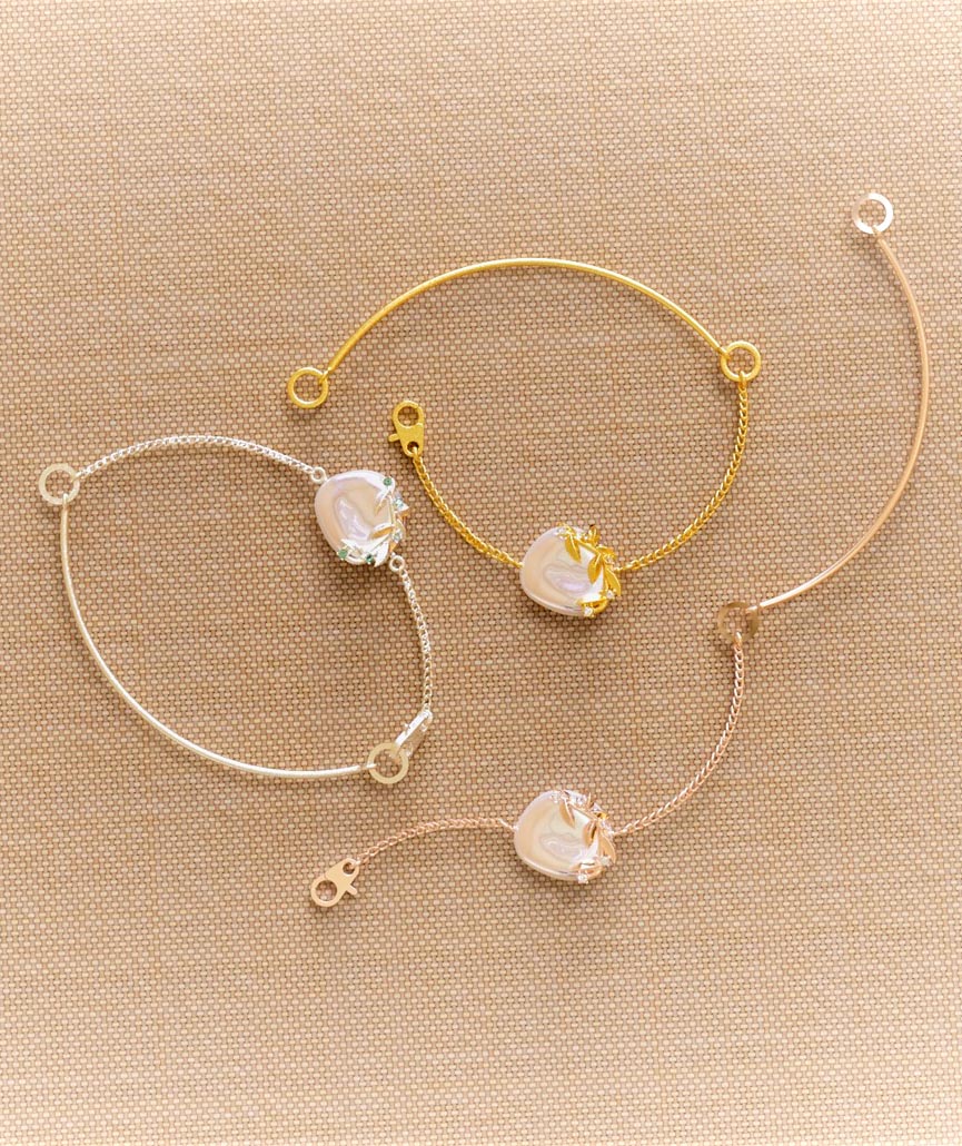 Silver or gold plated silver18kt. bracelet with fresh water pearl.