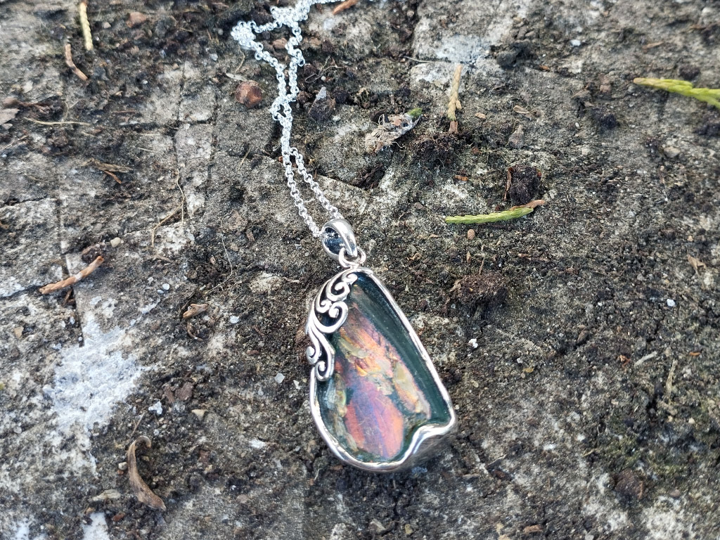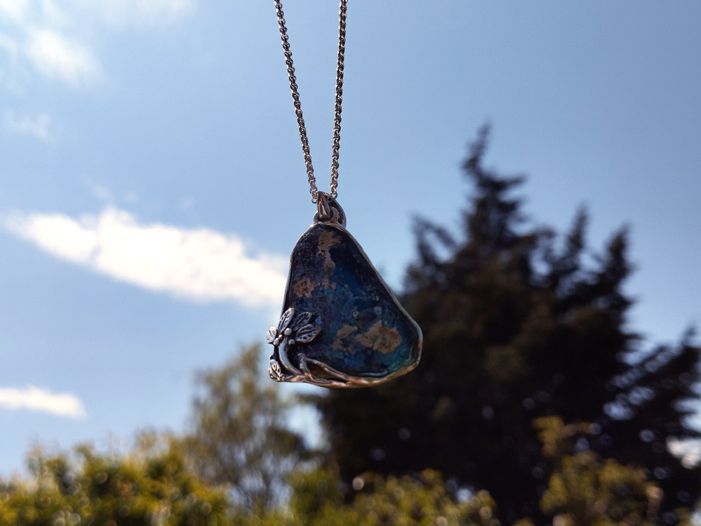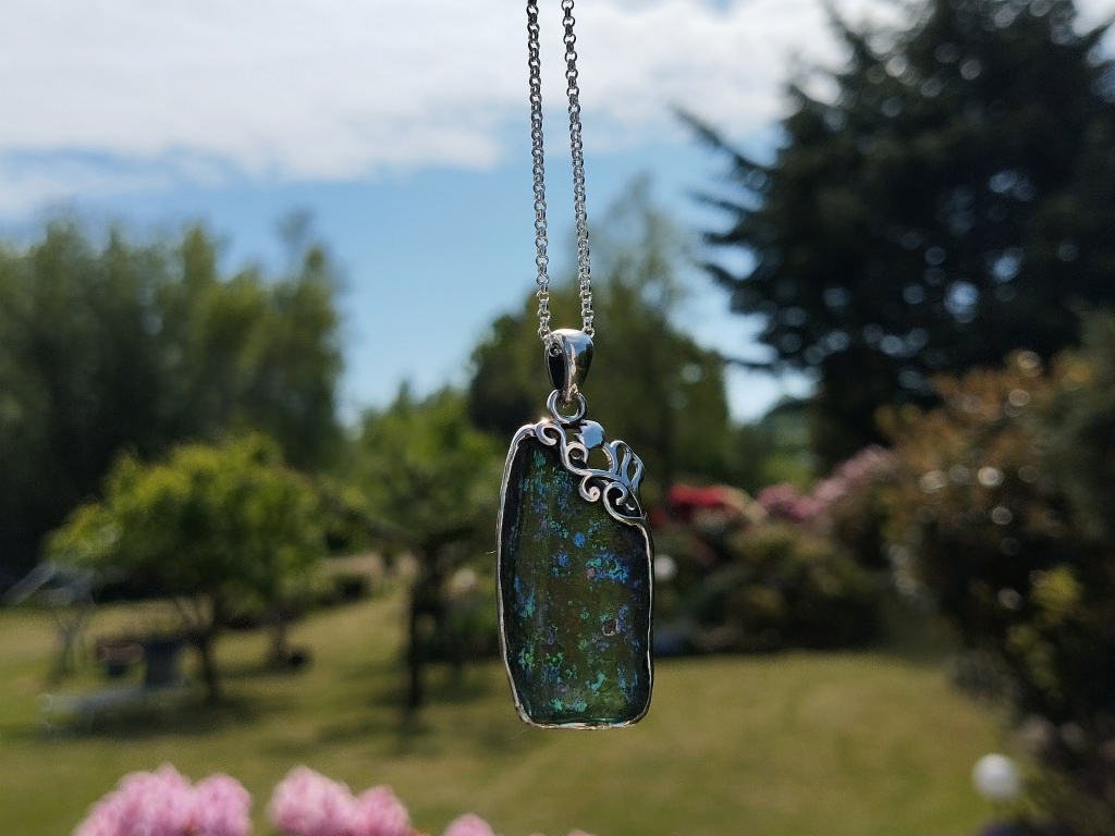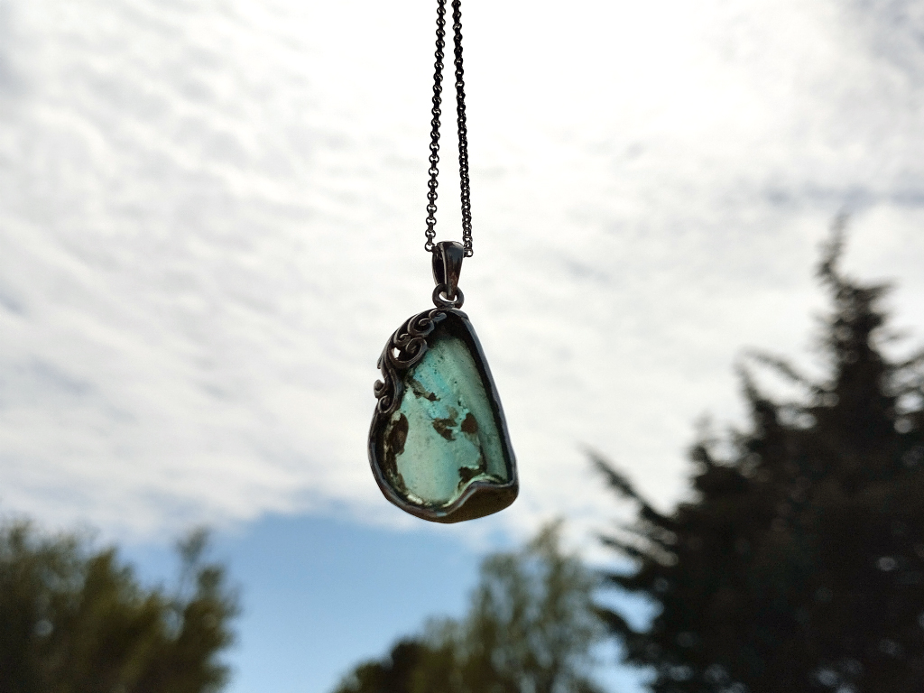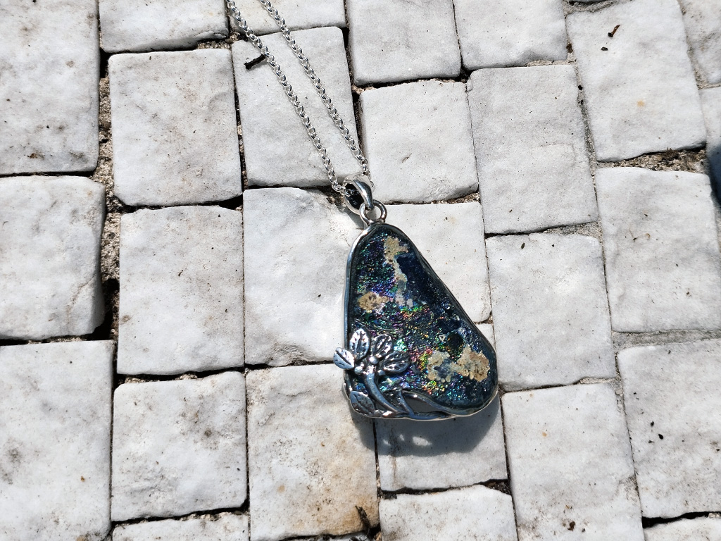 Ancient Roman glass combined with precious metals like sterling silver.