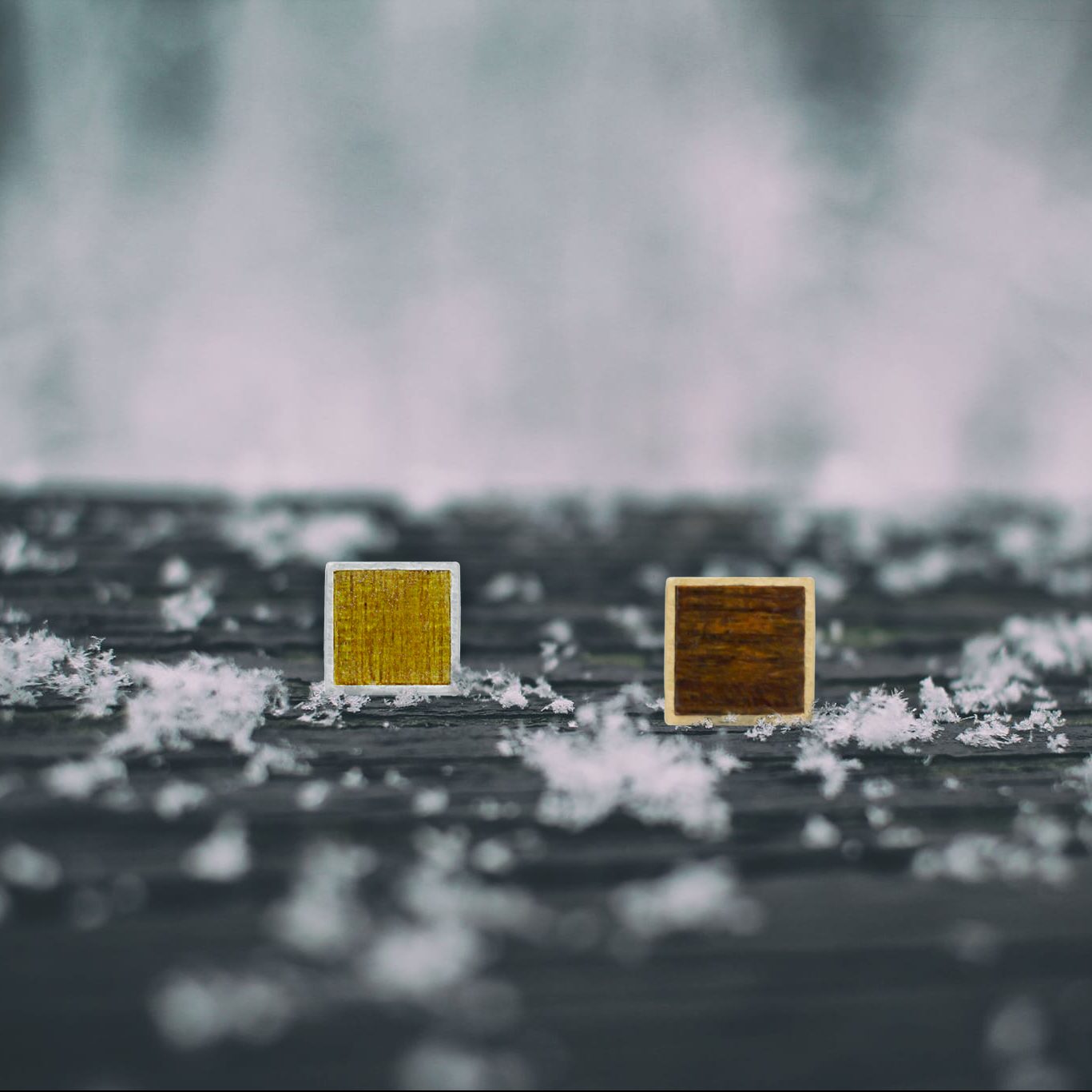 Square Charm in silver or gold plated silver and wood.